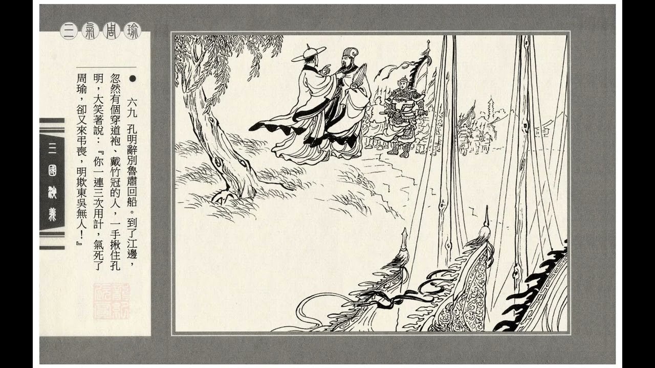 Du thúc quân kéo đi đến Ba Khâu, bỗng lại có người báo mé thượng lưu có Lưu Phong, Quan Bình chặn ngang sông. Chu Du lại càng tức nữa.