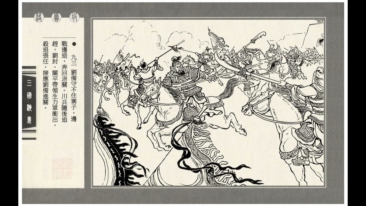 Quân Thục thừa thế đuổi riết. Huyền Đức người ngựa mỏi mệt, không còn tưởng đến đánh chắc gì nữa, chỉ cốt chạy cho mau thôi. Gần đến Bồi Quan thì toán quân Trương Nhiệm đuổi kịp. May có Lưu Phong, Quan Bình dẫn ba vạn quân sinh lực chặn lại, đánh lui Trương Nhiệm và đuổi theo hơn hai mươi dặm, cướp lại ngựa chiến rất nhiều.