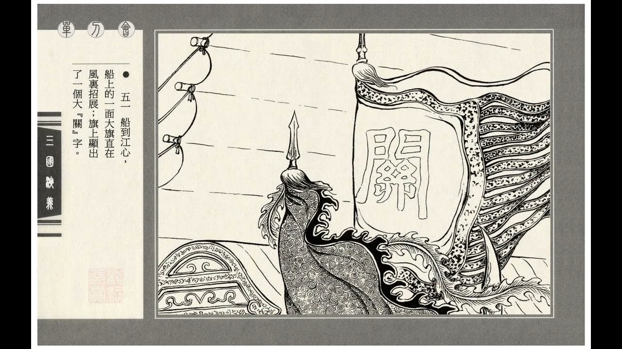Khi thuyền đến gần, nhìn rõ Vân Trường đội khăn xanh, mặc áo bào lục, ngồi chễm chệ, bên cạnh có Chu Thương vác thanh long đao đứng hầu; lại có tám, chín người Quan Tây to lớn lực lưỡng, mỗi người đeo một thanh mã tấu.