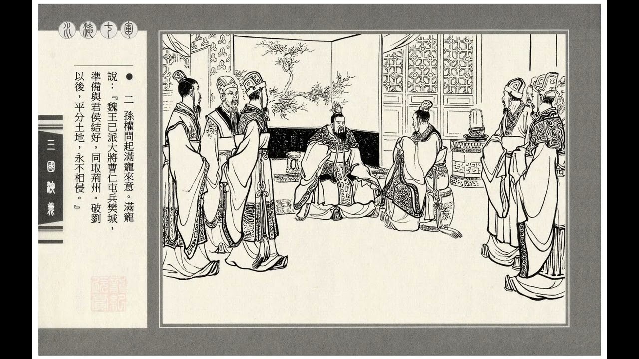 - Hiện nay Tào Nhân đóng quân ở Tương Dương Phàn Thành không bị sông Trường Giang cách trở, ngay đường bộ cũng lấy được Kinh Châu, làm sao không đánh chiếm lấy, lại phải xui Đông Ngô ta? Cứ lẽ ấy mà suy, thì đủ biết bụng Tào Tháo. Chúa công nên sai sứ sang Hứa Đô, xui Tào Tháo cất quân mặt bộ trước đến lấy Kinh Châu. Vân Trường tất kéo quân ra đánh Phàn Thành. Nếu Vân Trường đi rồi, chúa công sai một tướng đến ngầm lấy Kinh Châu, như thế chỉ một trận là phá xong.