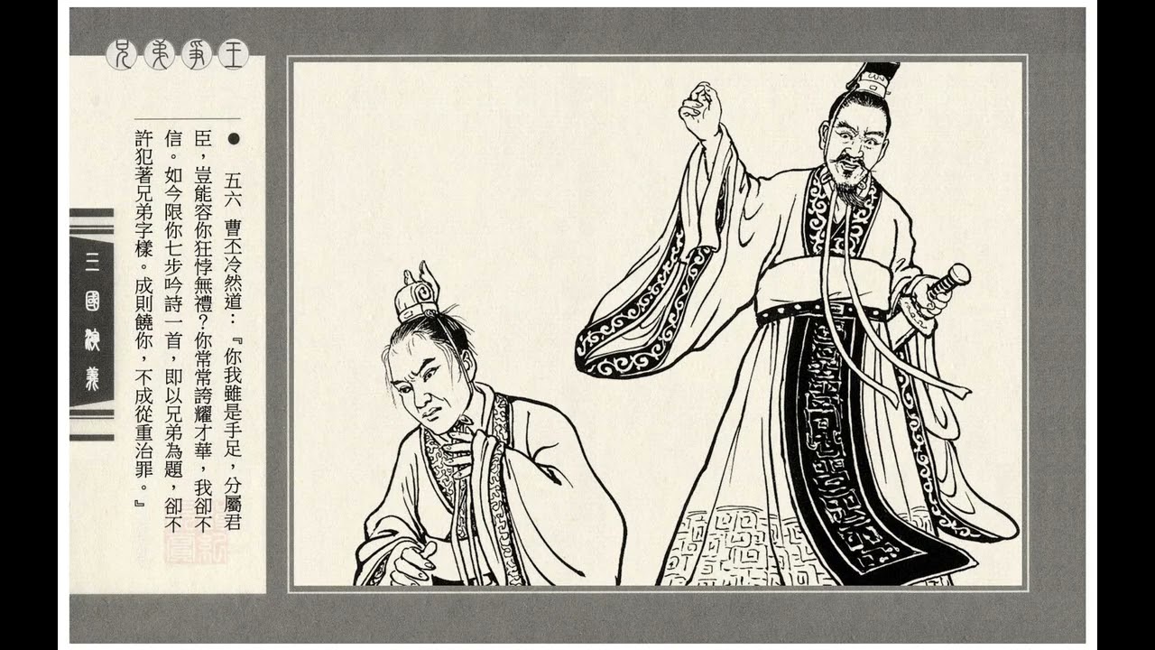 - Tao với mày, tình tuy là anh em, nhưng nghĩa thì là vua tôi, mày sao dám cậy tài bỏ lễ? Khi còn tiên quân, mày hay đem văn chương khoe hợm với người, tao nghi cho mày tất mượn người khác làm gà; nay ta hạn cho mày đi bảy bước, phải ngâm xong một bài thơ, ngâm được thì ta tha cho khỏi chết, nếu không xong, sẽ trị tội nặng, quyết không tha.