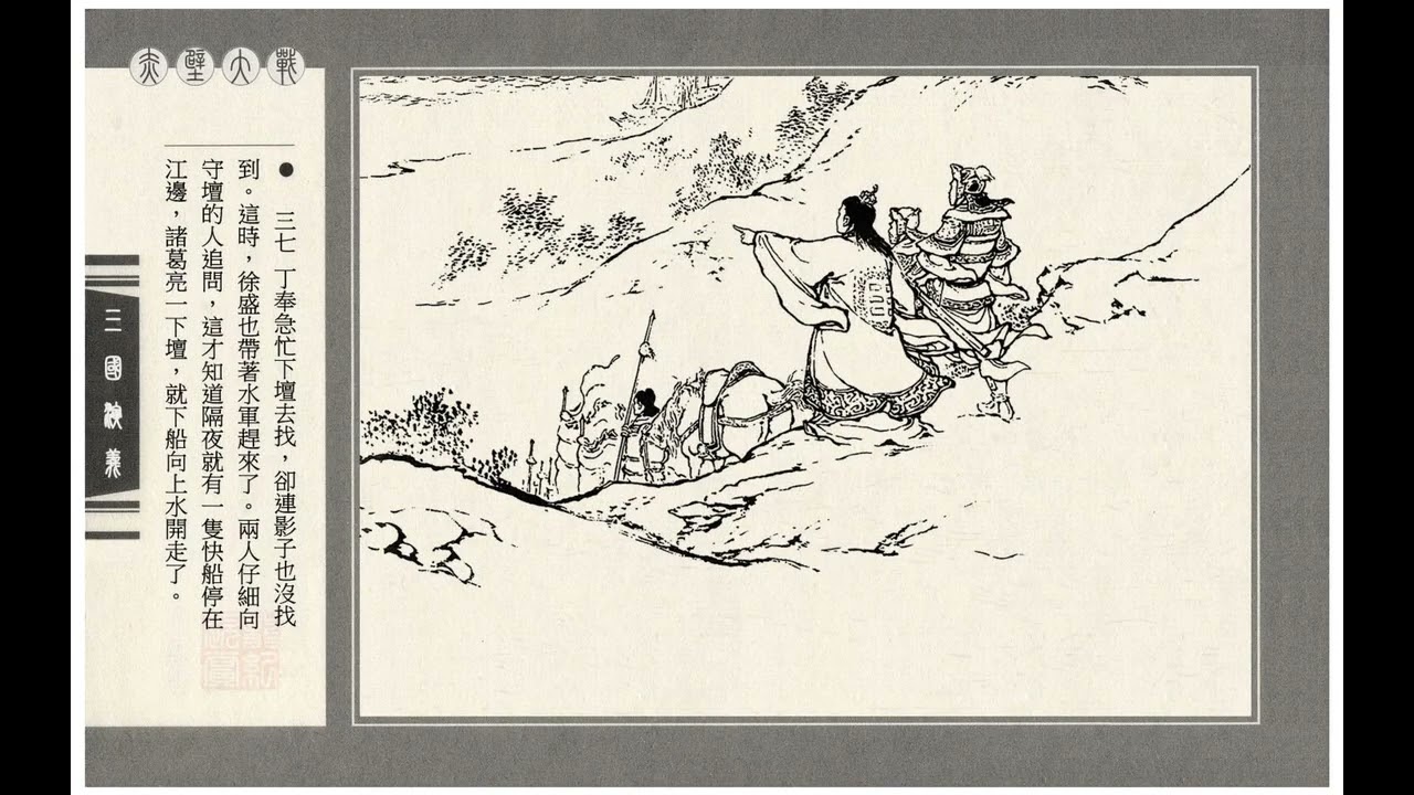 Phụng vội vàng xuống đàn đi tìm thì thuyền Từ Thịnh cũng vừa đến. Hai người tụ ở bờ sông. Tiểu tốt báo rằng chiều hôm qua, có một chiếc thuyền đỗ ở bến trước mặt và mới rồi thấy Khổng Minh xoã tóc xuống thuyền, thuyền ấy vừa ngược sông.